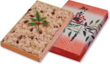 ※ 赤飯には、お祝い用と仏事用がございます(仏事用には南天は付きません)。また、赤飯用のごま塩は、別袋にて内包装致します。
