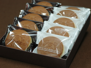 当店自慢の「どら焼き」に深谷市イメージキャラクター「ふっかちゃん」を焼印で描いた商品です。 7種類の味が楽しめ、丸型のどら焼きの他に、ハート型のどら焼き(期間限定)があります。
